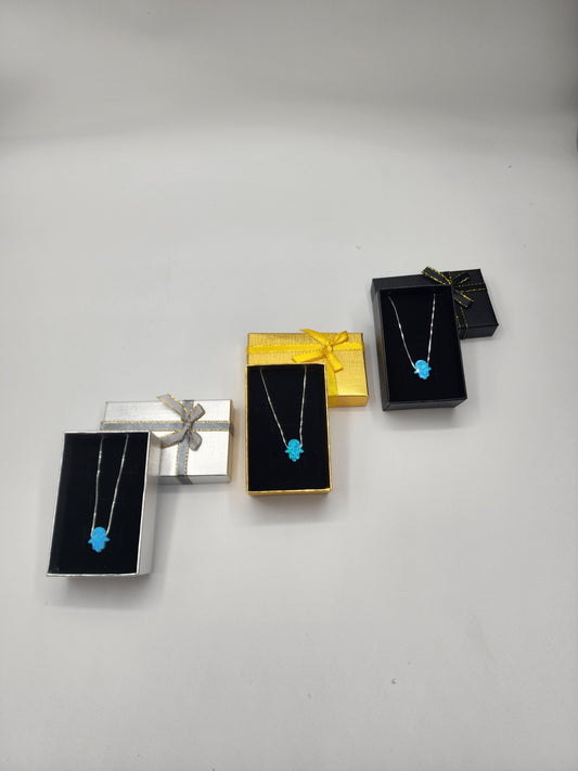 Sterling Silver Necklace, with Opal Stone "Hamsa" 1Cm