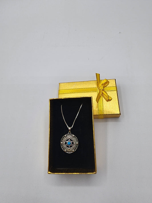 Sterling Silver Necklace- Star Of David 2.5 Cm With Small Turquoise Stone